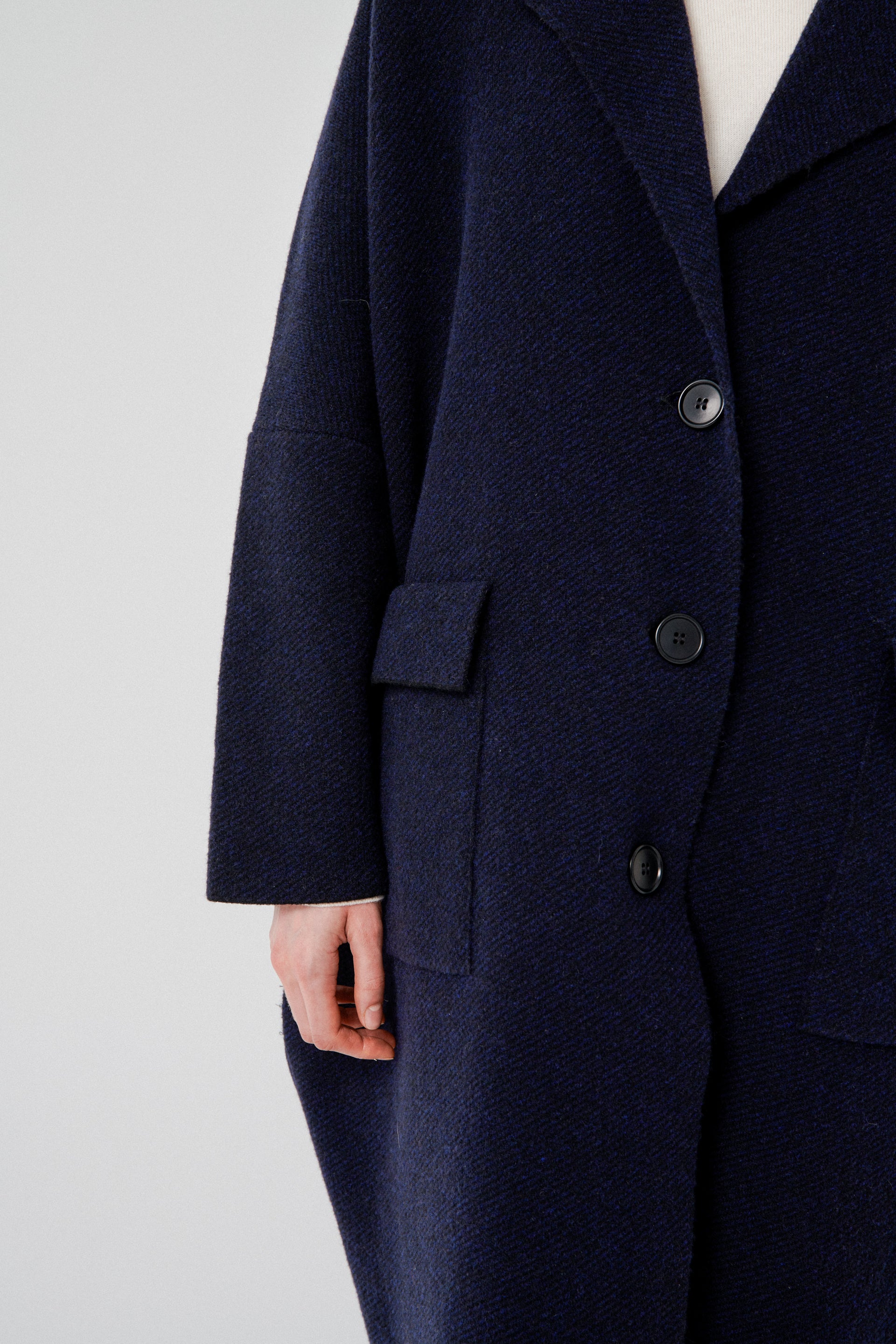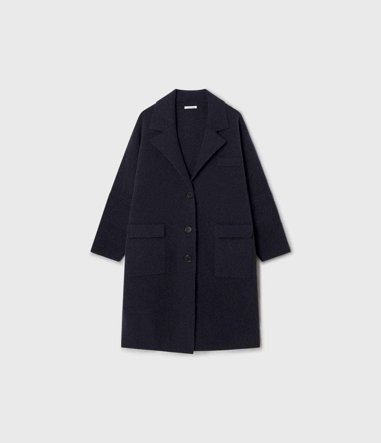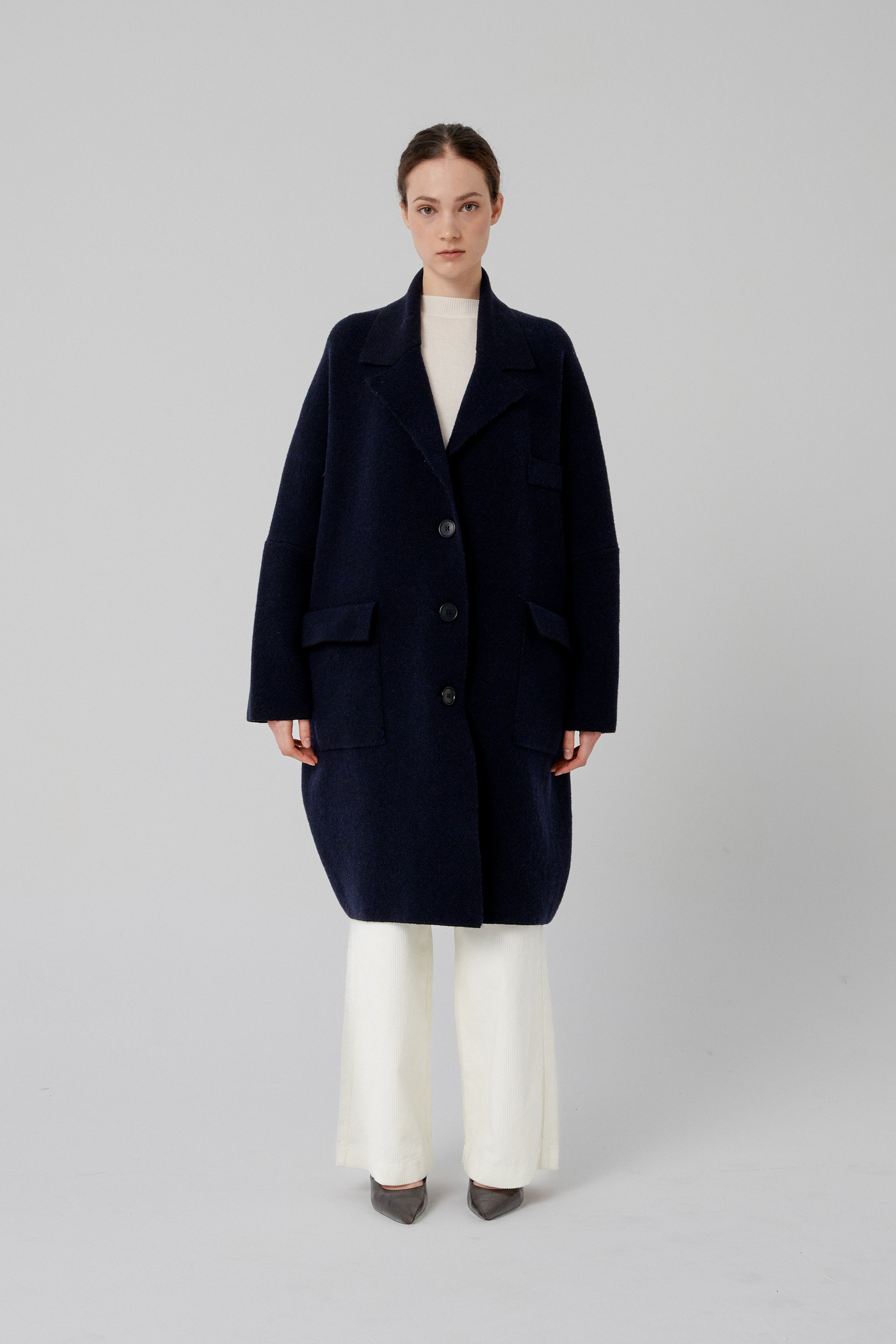 Ribbed knit jacket with front button fastening and patch pockets. Extra oversized.Made from a wool-blend fabric.