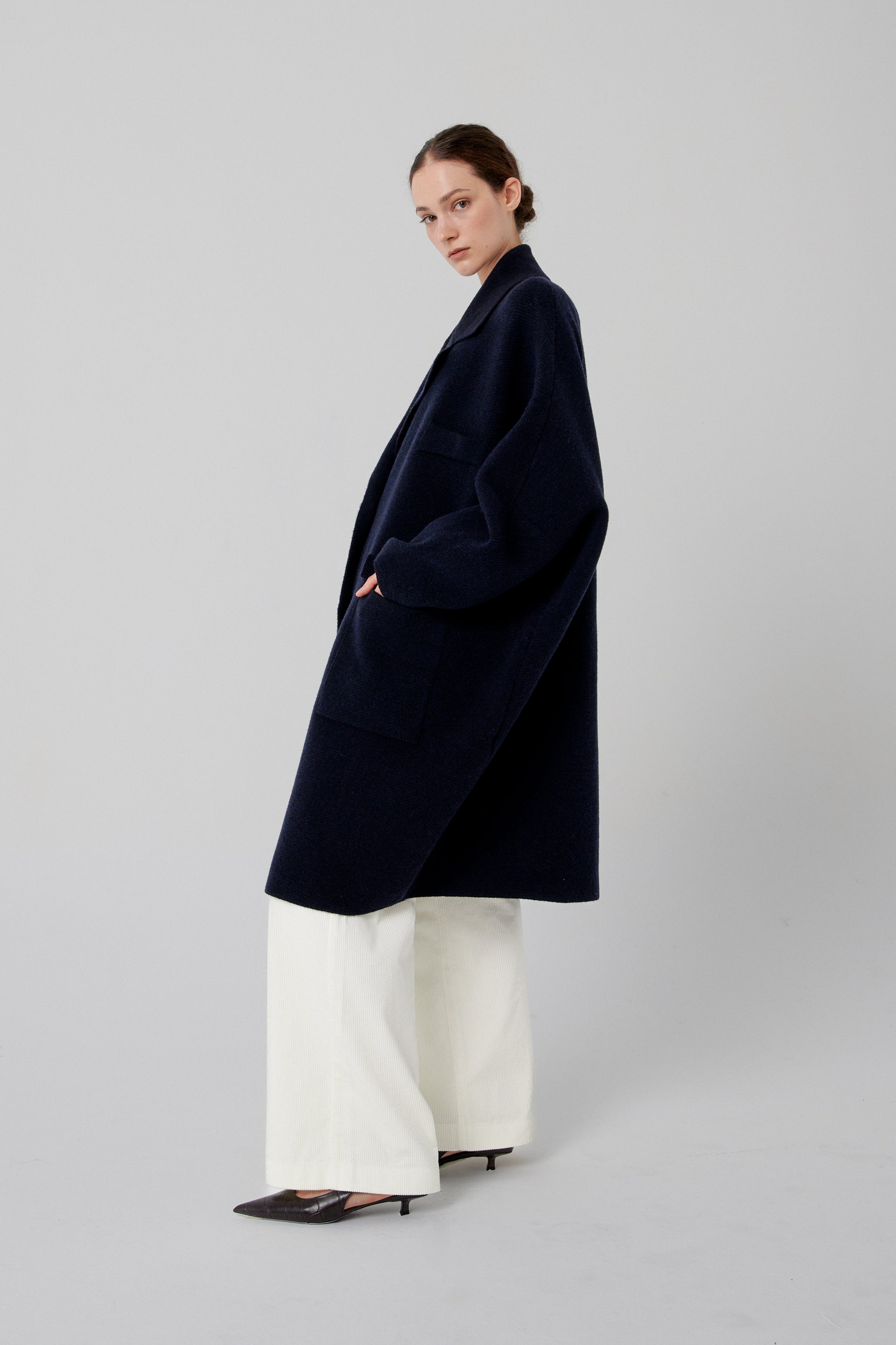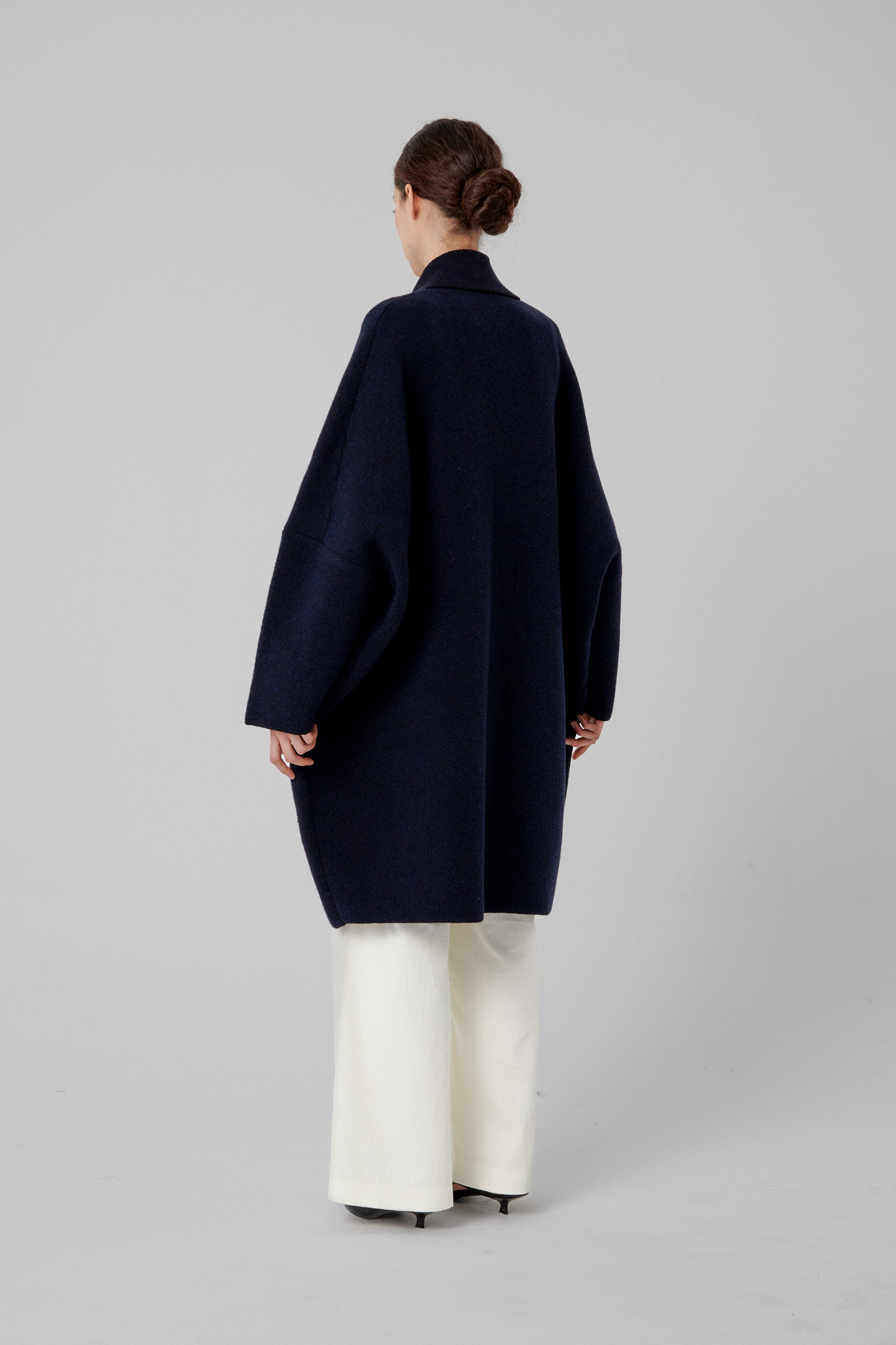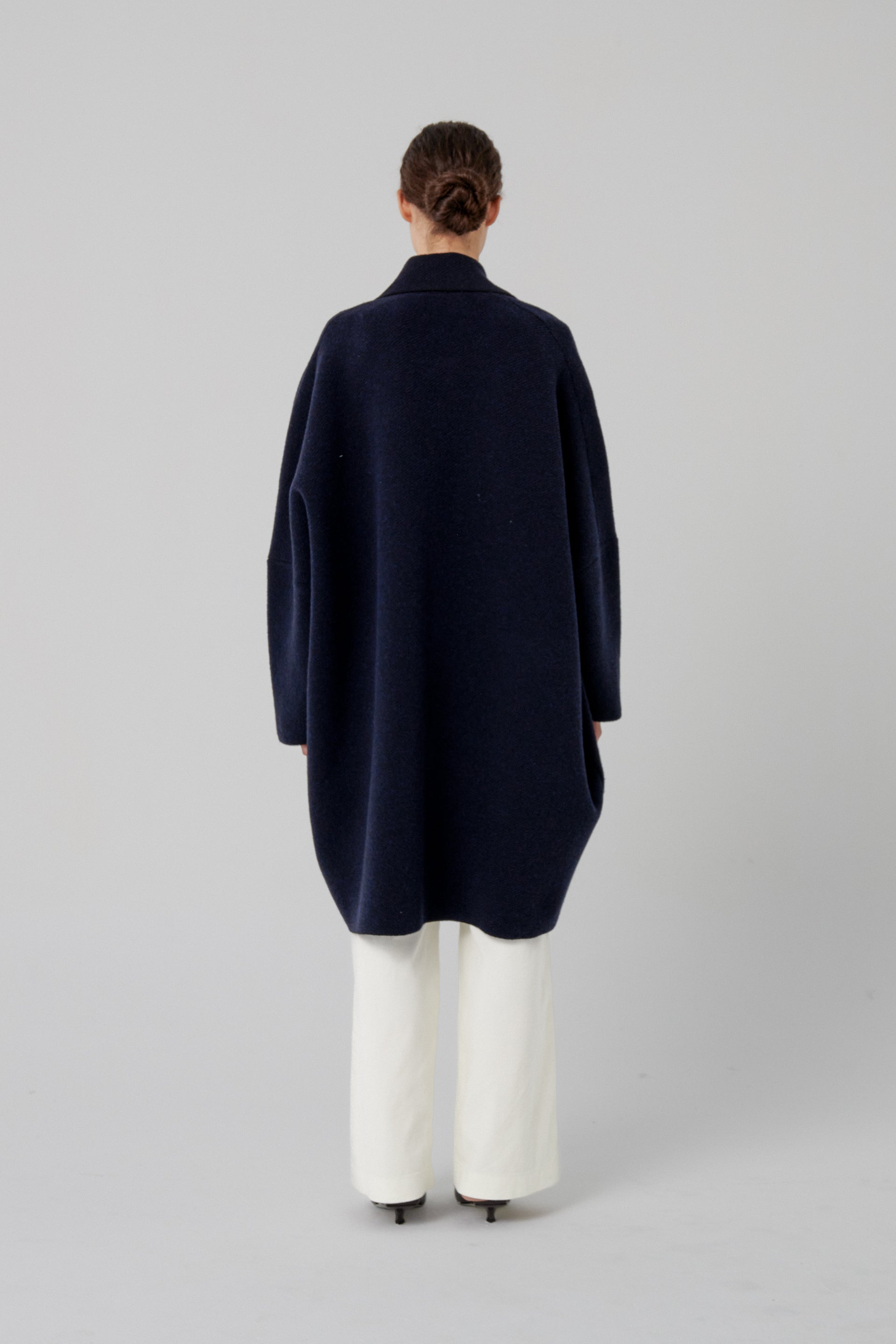 Ribbed knit jacket with front button fastening and patch pockets. Extra oversized.Made from a wool-blend fabric.