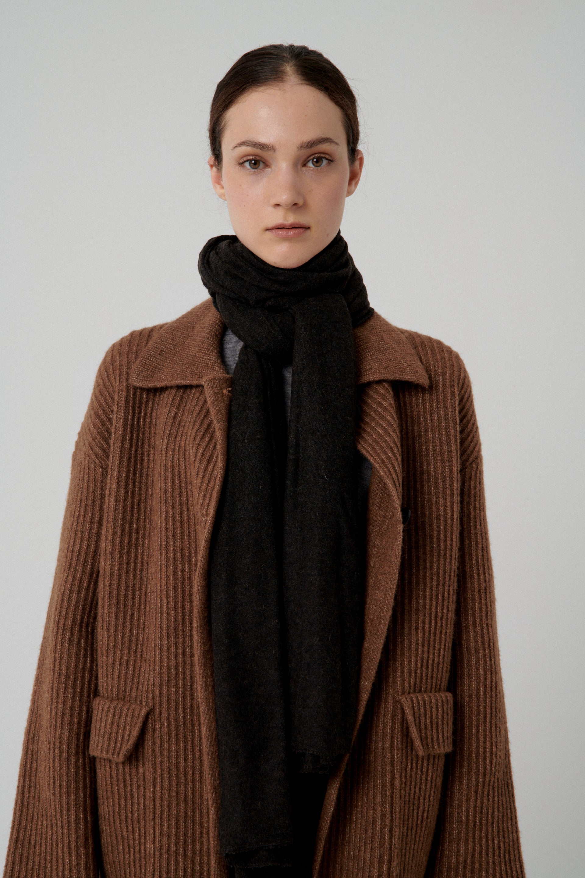 Scarf with a distressed finish. Multifunctional shawl, made from extra fine merino wool and baby alpaca.