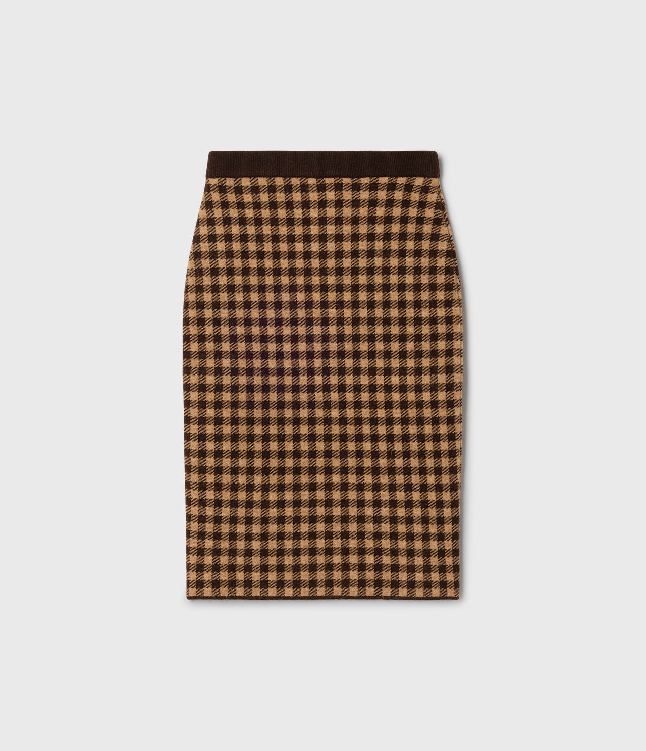 Midi pencil skirt with a ribbed waistband and vichy check pattern.