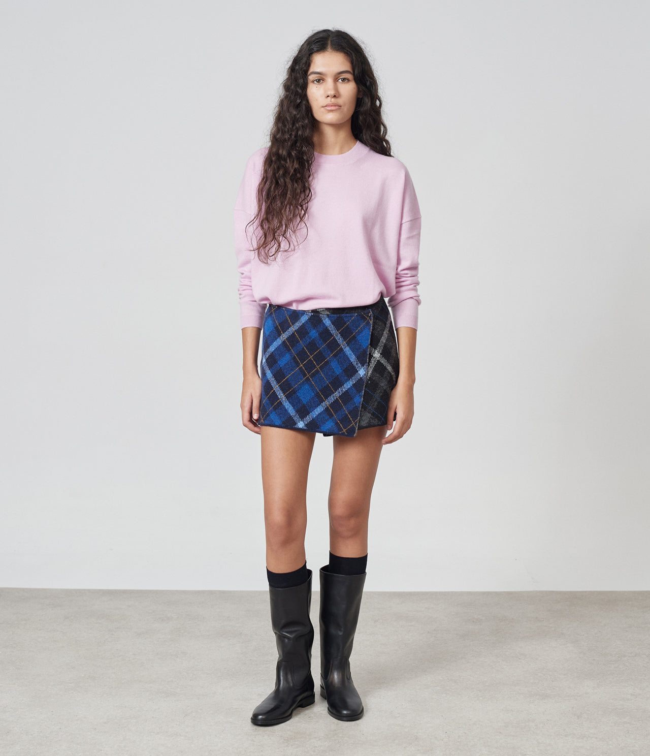 Bicolor crossover Renard mini skirt. Snap closures. Available only online.